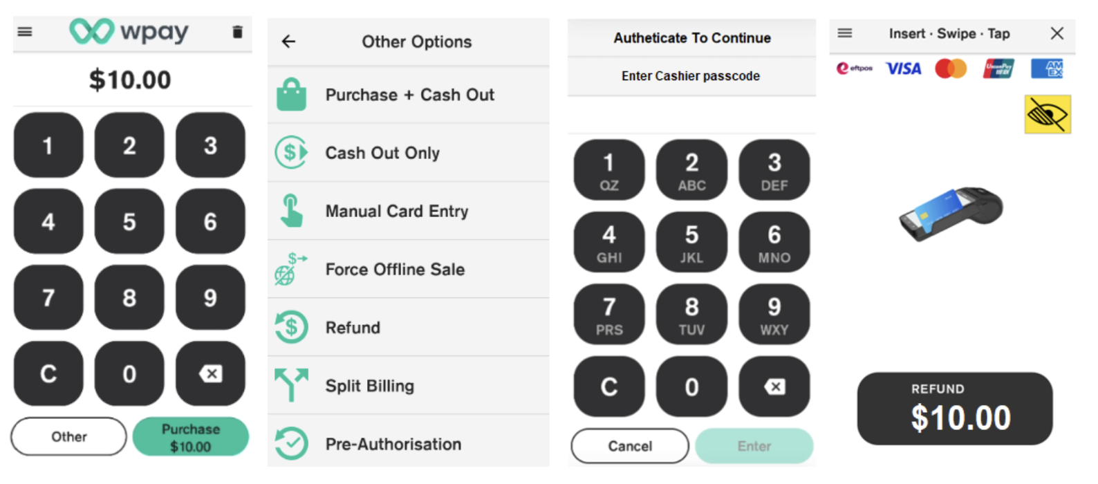 - Enter the refund amount into the keypad on the Payment screen and tap Other