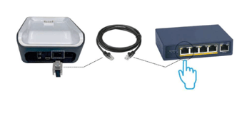 - Connect Ethernet cable to the base – Plug one end of the Ethernet cable provided into the power labelled with the icon